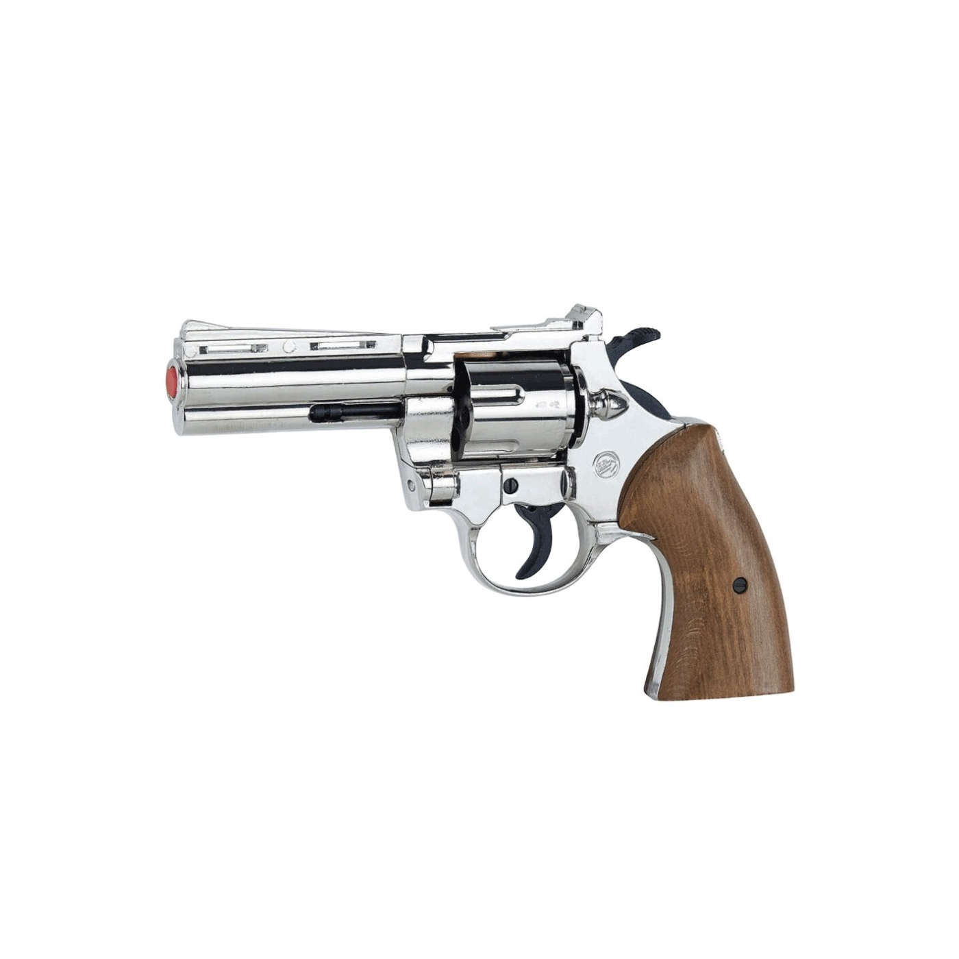 La pistola a salve Bruni Magnum 380 nickel è una replica di una pistola Revolver a tamburo reale in calibro .380, ma è stata progettata per sparare solo munizioni a salve o di segnalazione. Questo tipo di pistola viene spesso utilizzato in produzioni cinematografiche, spettacoli teatrali, eventi sportivi e per l'addestramento di cani da caccia e di sicurezza.