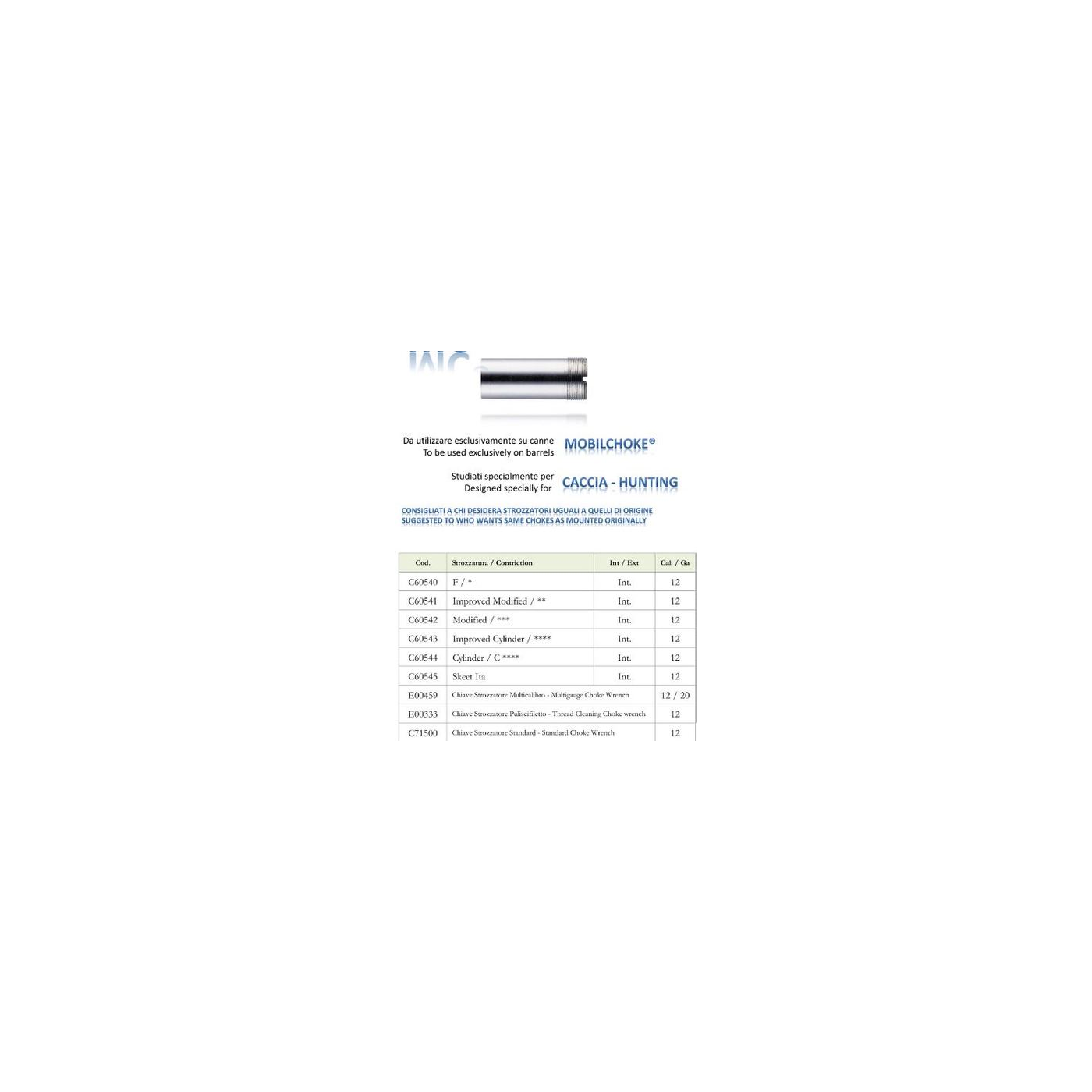 Strozzatori utilizzabili su fucili sovrapposti e semiautomatici in cal 12 dotati di canne di tipo Mobilchoke MC, come ad esempio Ultralight MC, Ultralight Gold MC, Ultralight Classi MC 687EELL Diamond Pigeon MC, &(/EELL Diamond Pigeon Restyle MC, 686 Silver Pigeon I MC, 686 Silver Pigeon II MC, 686 Silver Pigeon III MCAL391 Urika MC, AL390 MC, A390 MC, A303 MC, A304 MC, A300 Outlander, A300 Outlander Synthetic, A300 Outlander Camo, ES100 e relative canne di ricambio in cal 12 Mobilchoke.