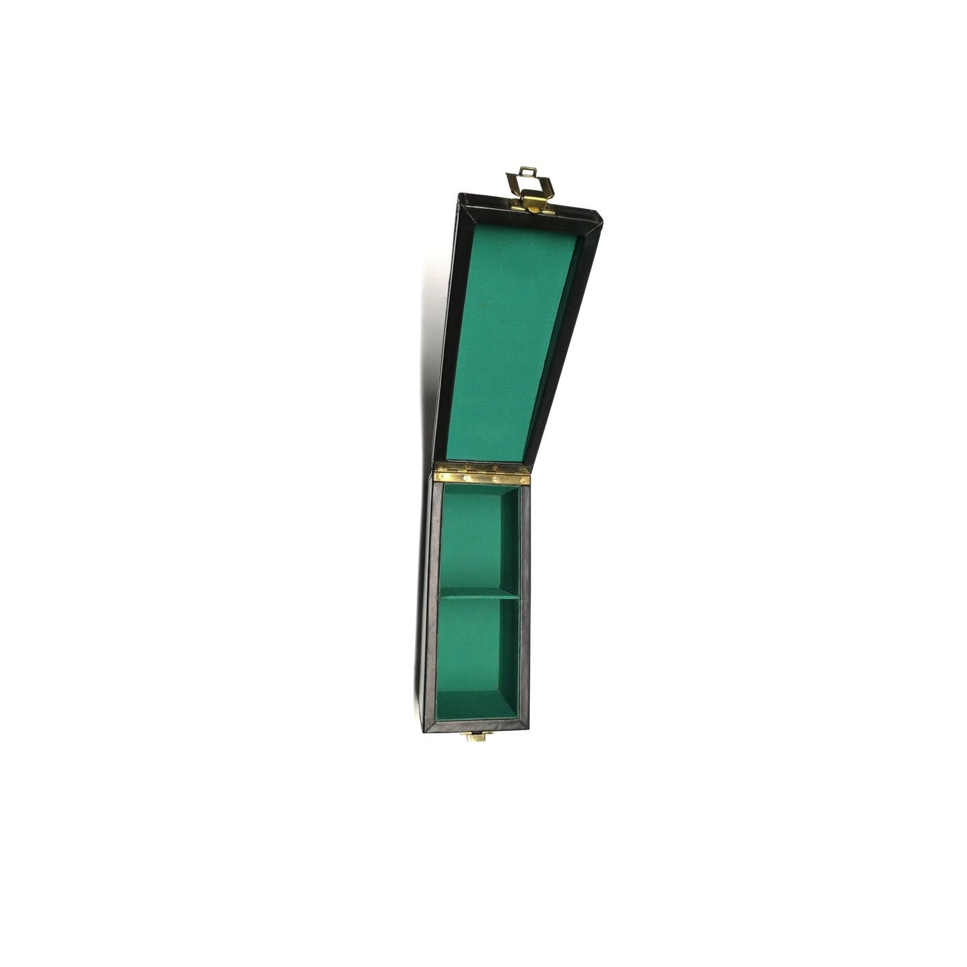 Realizzata in pelle, internamente a mano da artigiani del settore. Foderata internamente in cotone color verde.