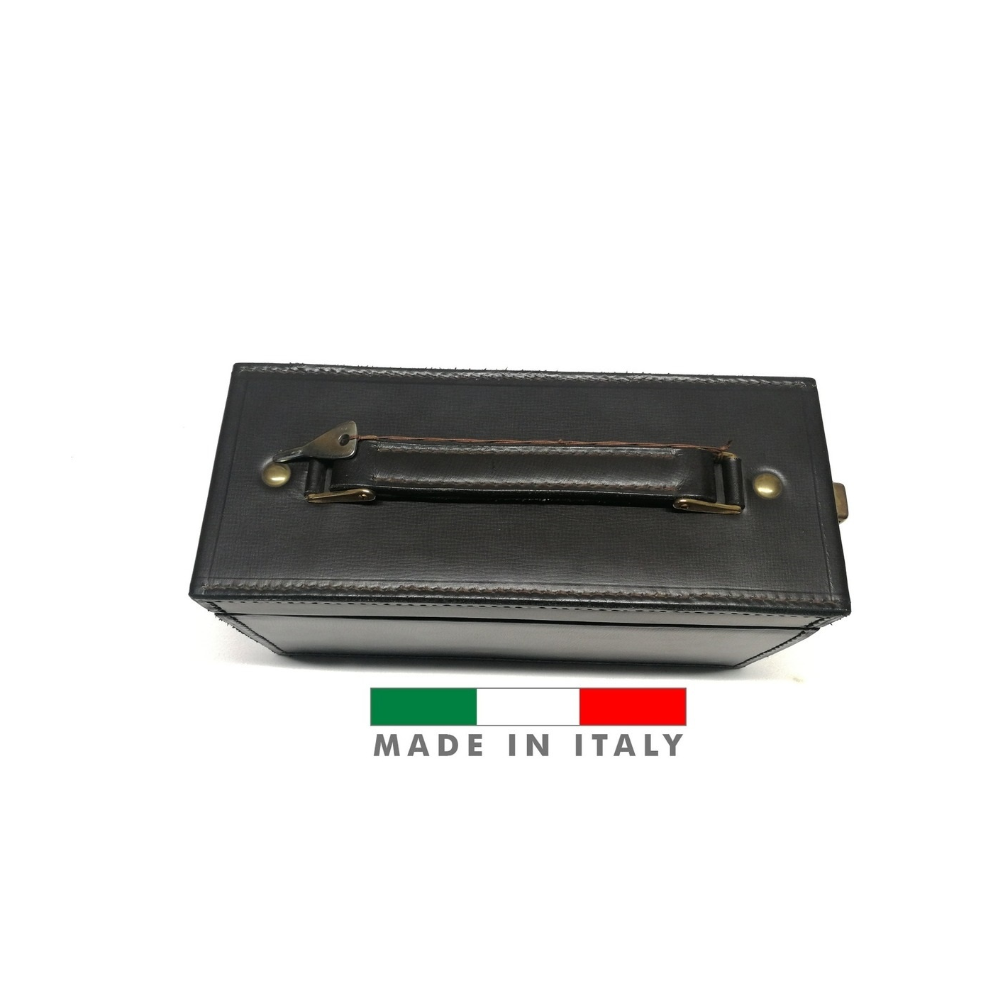 Elegante valigetta porta munizioni in pelle per 50 cartucce (2 scatole da 25)calibro 12 con serratura a chiave.