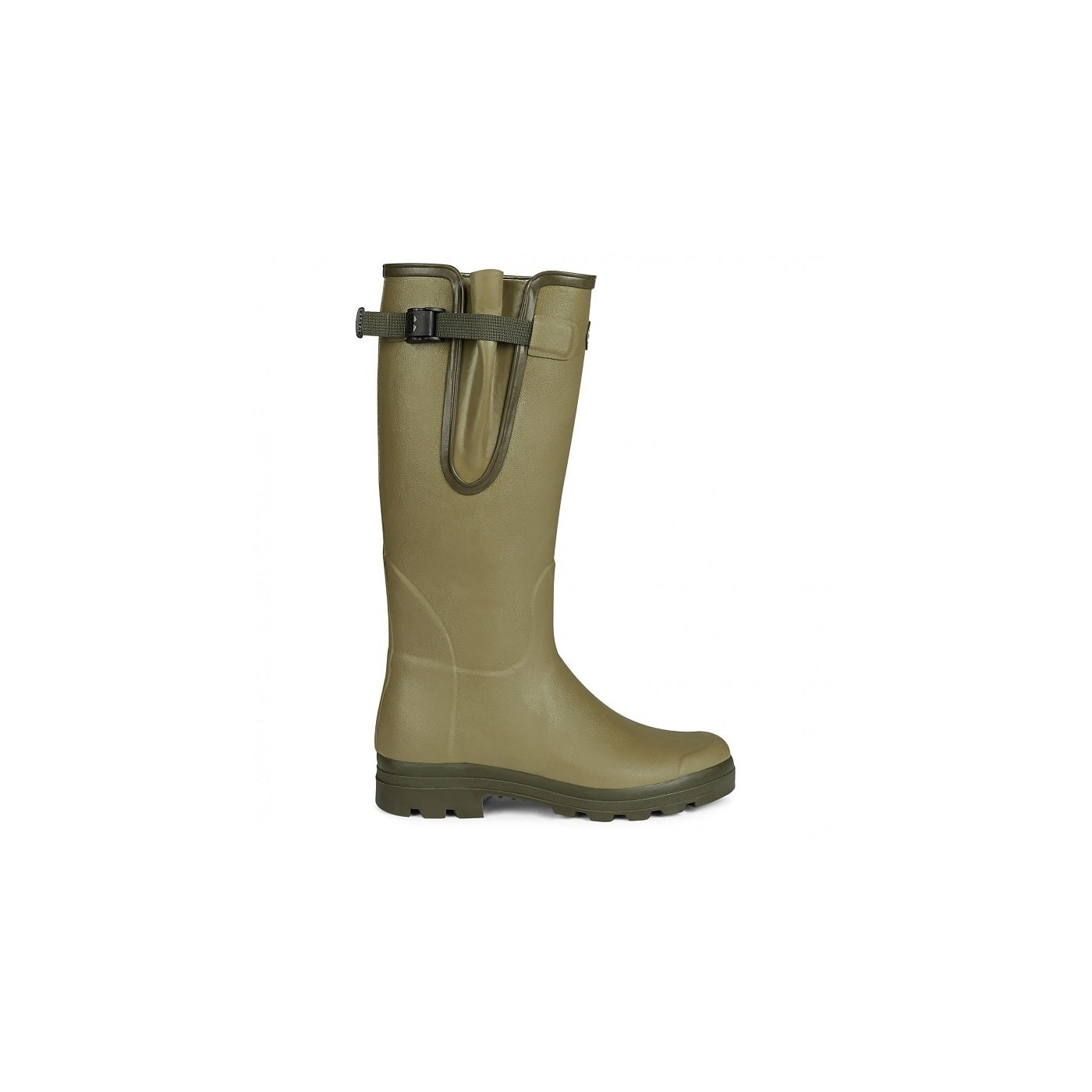 ULTIMO PAIO: Stivale Le Chameau Vierzon numero 45, interamente in caoutchouc naturale. Soffietto a fine corpo stivale con cinghia di serraggio per agevolare la calzata. Foderato in Jersey, tessuto resistente ed elastico, che permette di modellare lo stivale al piede e di seguirne i movimenti. Suola in caoutchouc bidensità con scolpiture tridirezionali che aumentano l’aderenza al terreno, arricchita da un rinforzo rigido nella volta plantare in modo da assorbire maggiormente le asperità del terreno, evitando l’affaticamento. Prodotto originale Le Chameau.