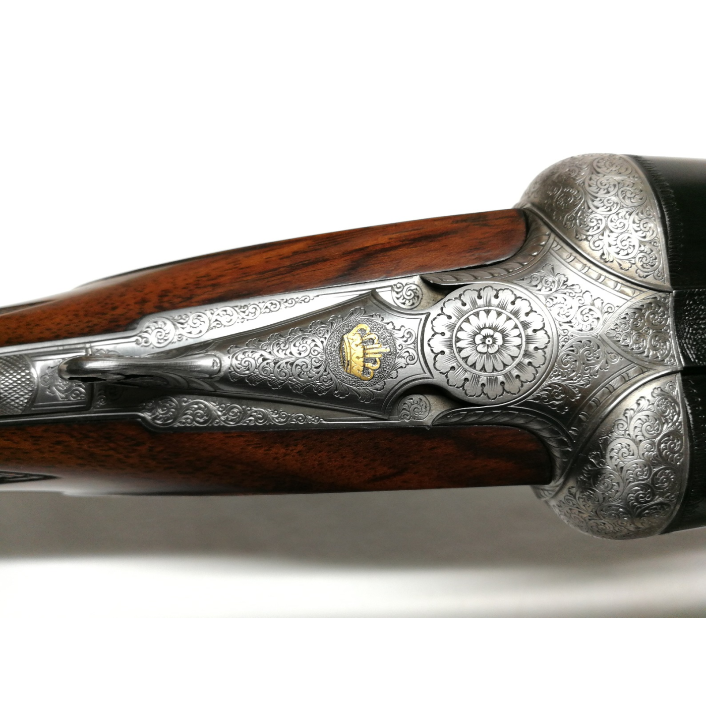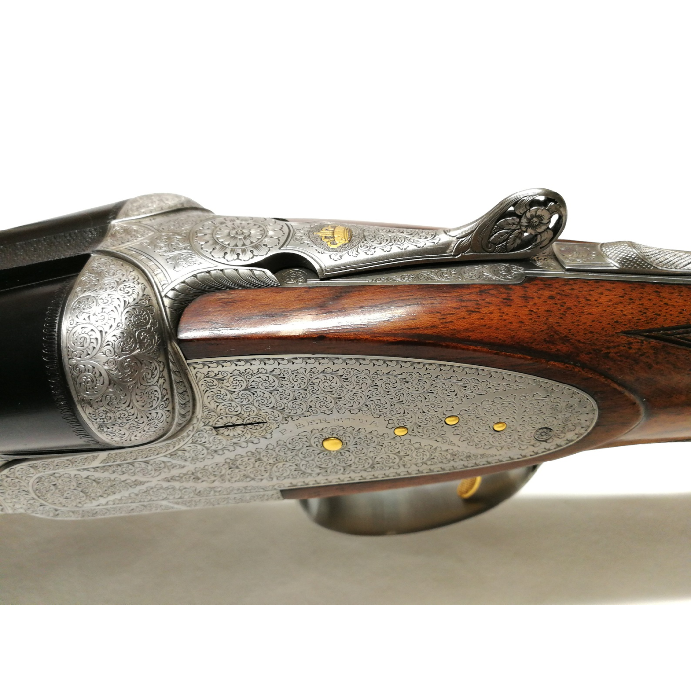 Bellissima doppietta P. Beretta calibro 12 modello 451 EE/LL Gran Lusso - monogrillo - calcio all' inglese - canne Boehler Antinit da 70 Cm BV ( bindella ventilata ) – X-XXX peso canne 1.320 Kg – batterie Holland & Holland - peso totale 3.210 Kg - asta a coda di castoro – chiave traforata - pieghe 30-35 - lunghezza calcio 360 mm - anno 1971 - totalmente inciso per mano del Maestro G. Bertasi