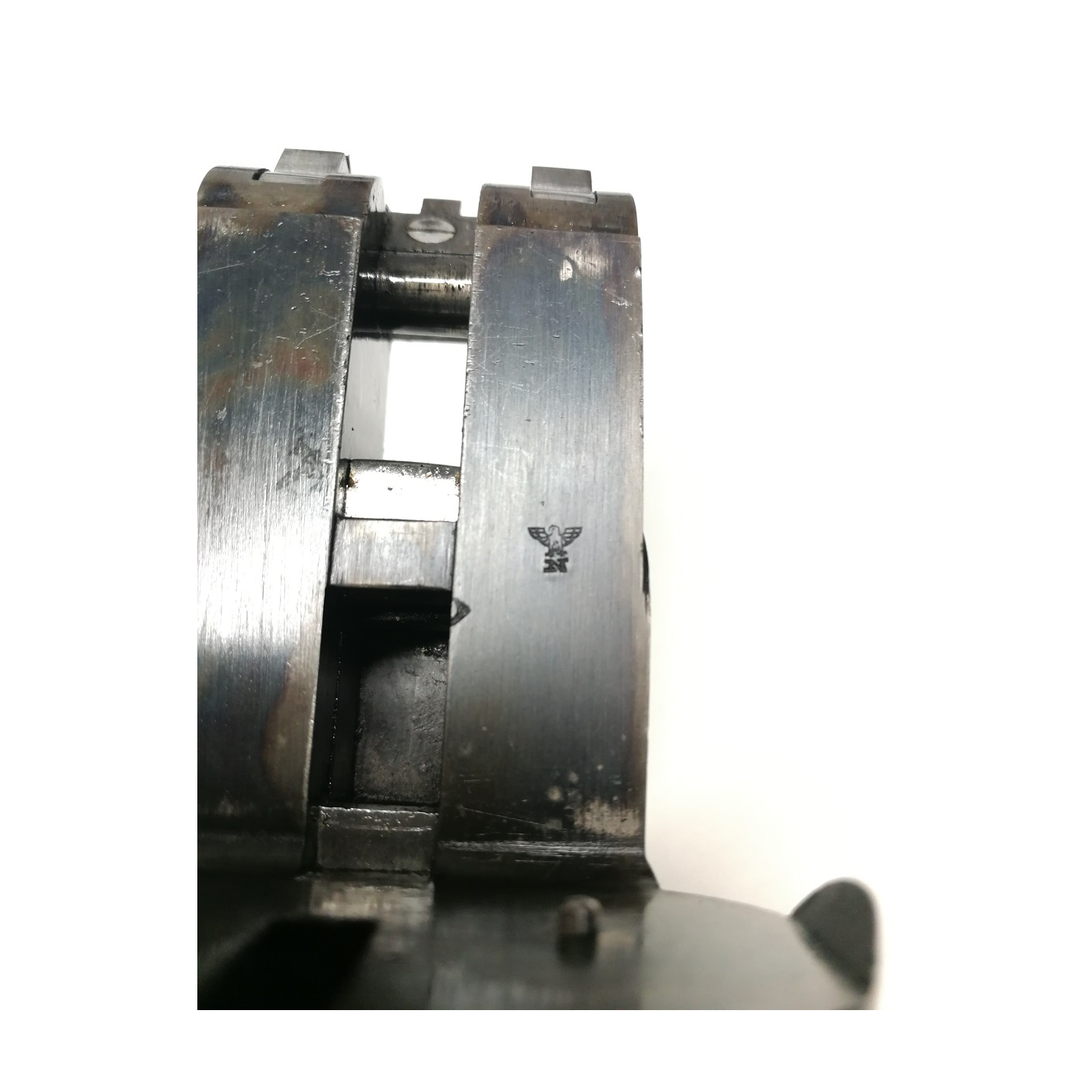 La doppietta riporta 1 punzone tedesco “Waffen Heim” con l’ aquila N simbolo della produzione civile. Questo punzone è stato utilizzato in Germania dal 1939 al 1945.Brunitura ottima ed originale con bascula tartarugata.