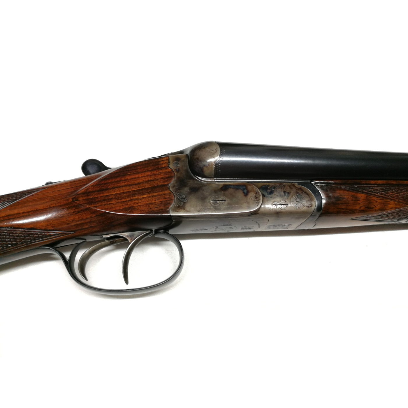 Doppietta Greifelt & Co. Suhl calibro 12 - canne prodotte con acciaio Krupp lunghezza 68 Cm XXXX-XX (18.4) - bigrillo - calcio inglese - piega 35/55 - Lunghezza calcio 360 mm