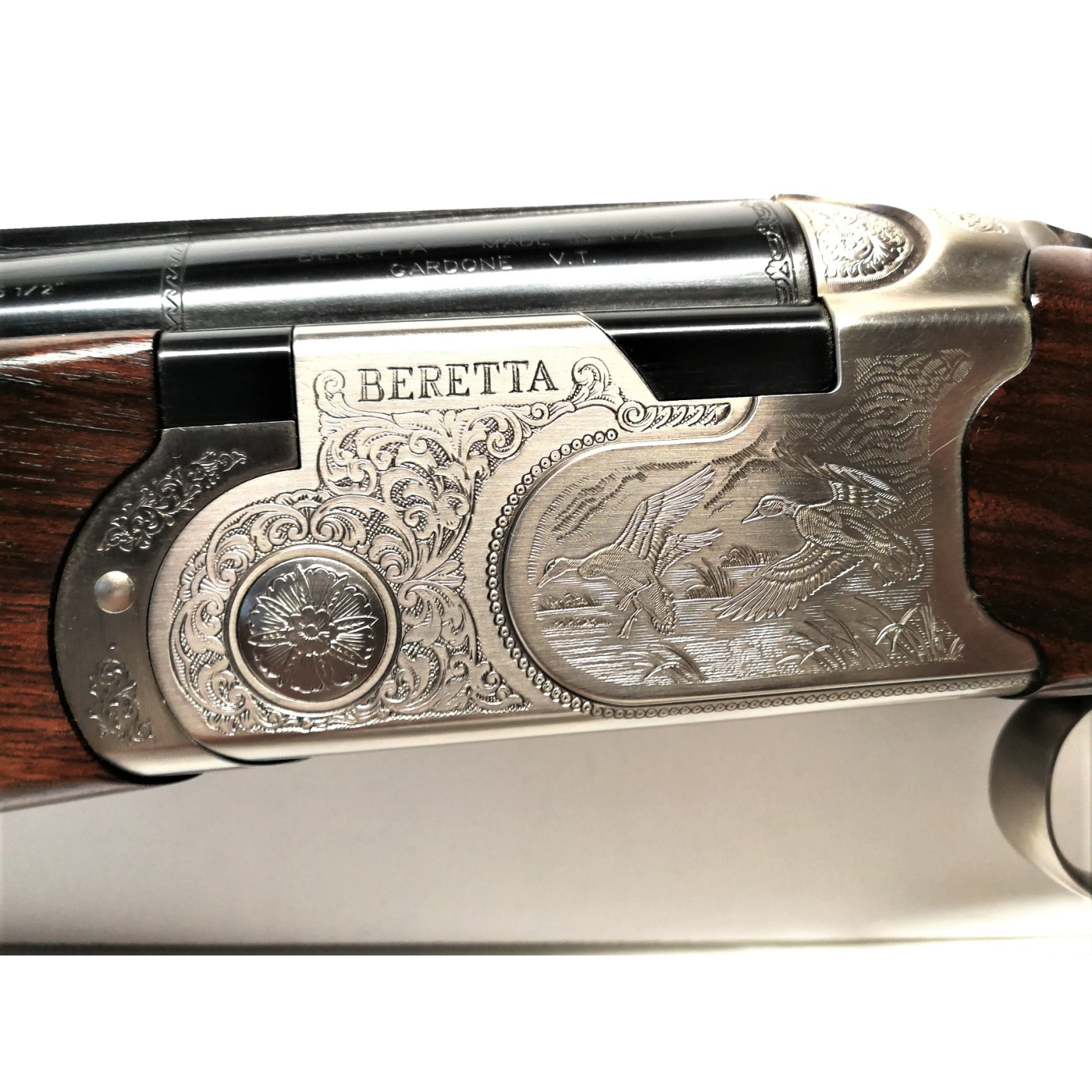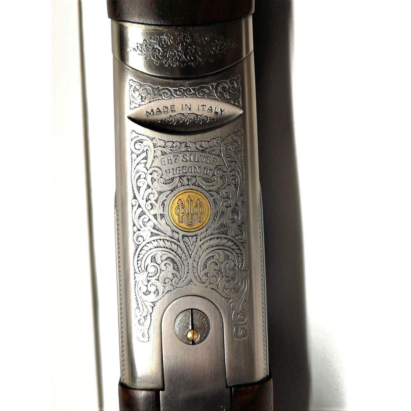 Sul Silver Pigeon III, la ricca incisione sposa perfettamente l’ornato floreale della bascula con le gradevoli scene di caccia degli specchi laterali sui quali campeggiano anatre e fagiani nel calibro 12, quaglie e beccacce nei calibri inferiori. Sul petto di bascula spicca il marchio Beretta in “oro” che identifica l’arma già nella rastrelliera.