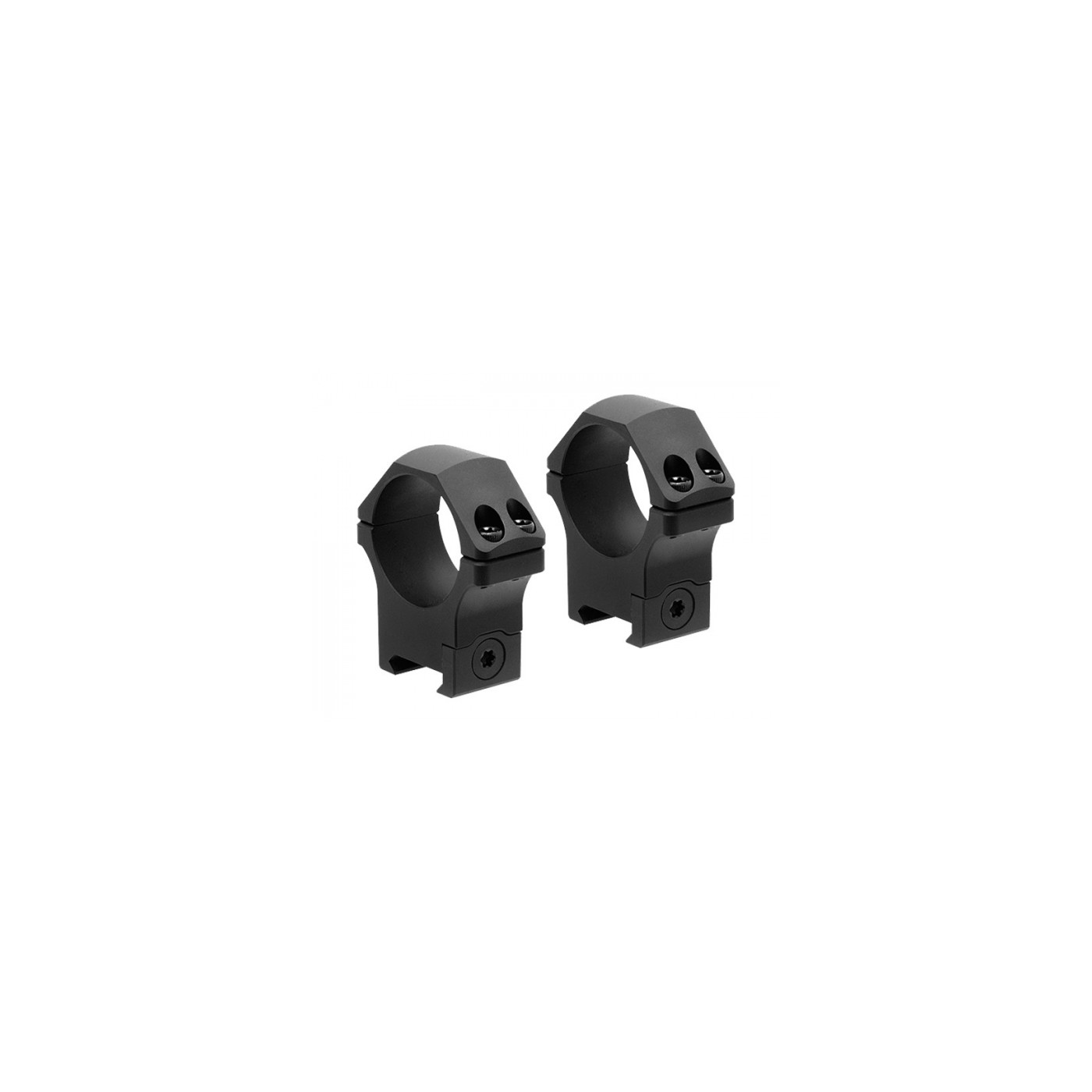 UTG Pro 34mm POI (Precision Optics Interface) Anelli Picatinny medi Prodotto negli Stati Uniti Anelli per cannocchiale Picatinny da 34 mm Profilo medio Lavorazione di precisione, struttura in alluminio e acciaio rifinita con anodizzazione a rivestimento duro Arresto del rinculo quadrato integrale Piastra scorrevole di bloccaggio torx a basso profilo con aste di guida caricate a molla del quadrante Ripetizione del rinculo del fuoco dal vivo testata La superficie interna dell'anello è lavorata con precisione Larghezza 22 mm Include: 2 anelli, ciascuno dotato di 4 viti torx.