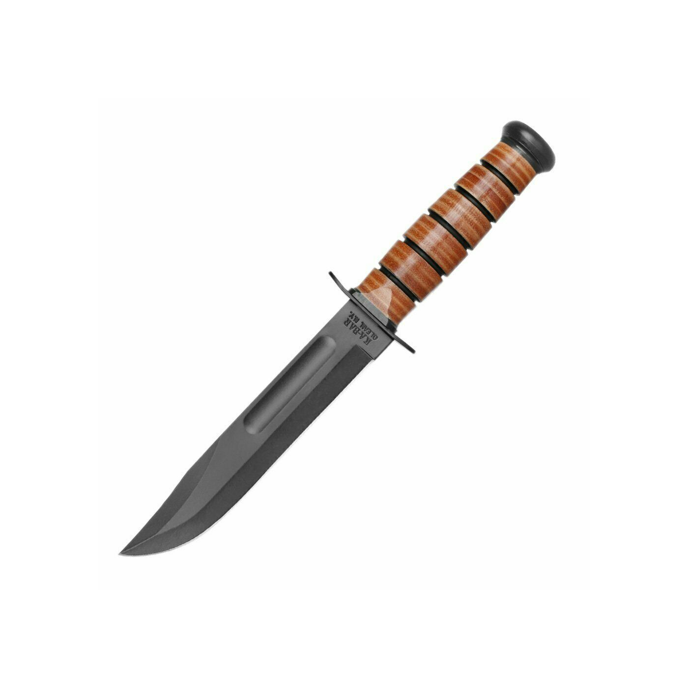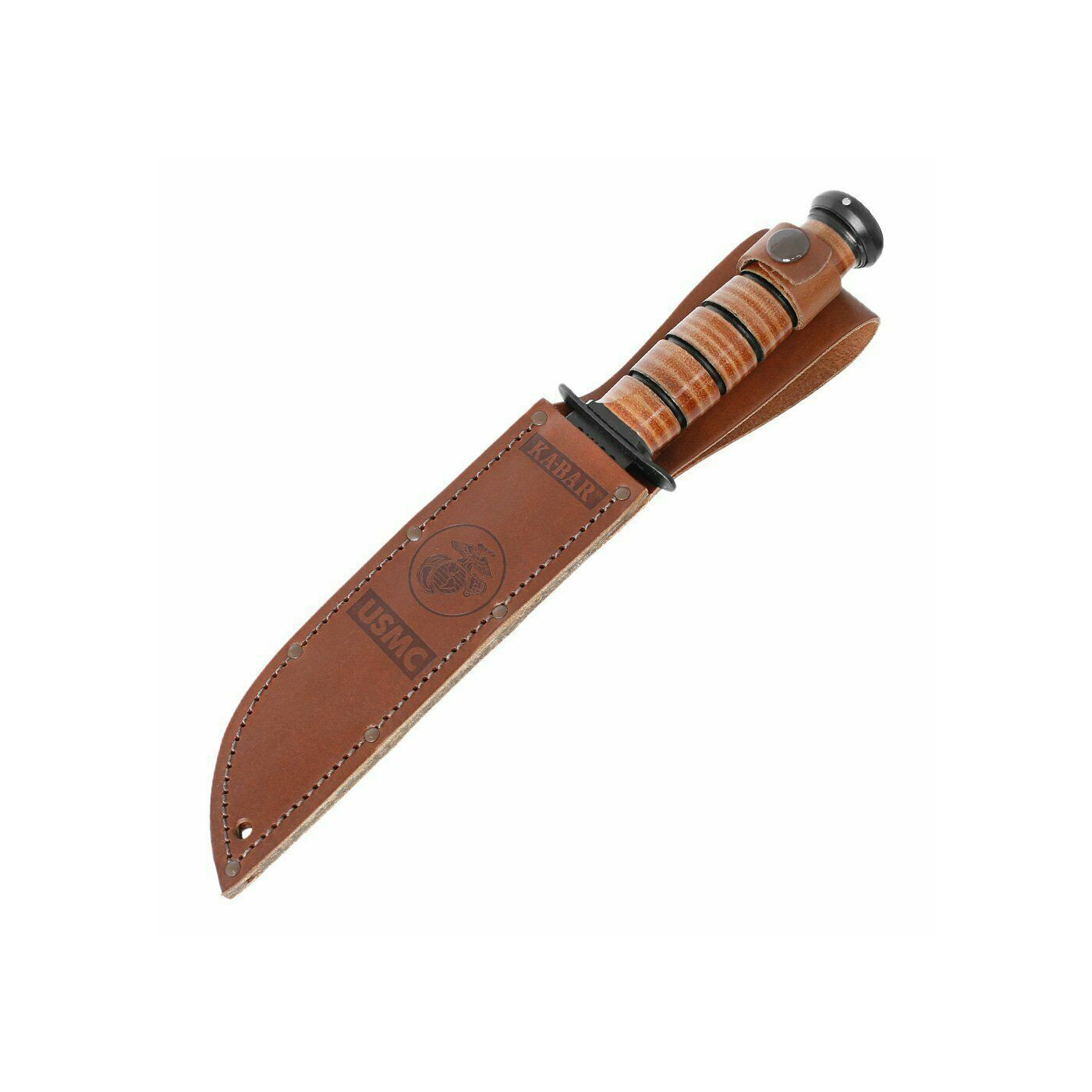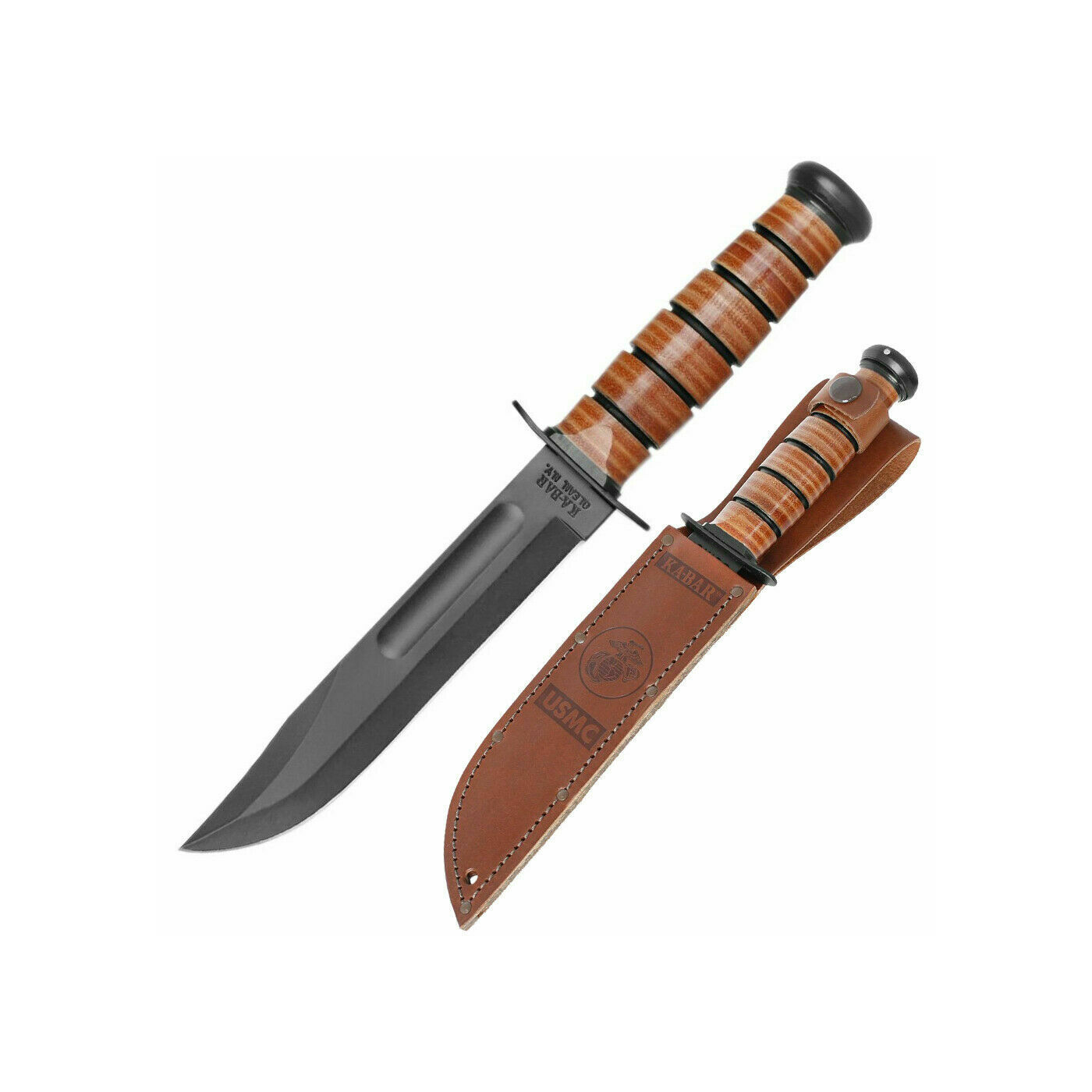 Il KA-BAR USMC 1217 è un coltello leggendario. Nel 1942, questo coltello fu scelto dal Corpo dei Marines degli Stati Uniti per essere il coltello da combattimento dei Marines. Da allora, questo coltello ha fatto parte dell'attrezzamento standard di molti soldati. Questo è un coltello grande e si sente molto robusto. Il manico ha parti protettive che impediscono di avvicinarsi al filo affilato come un rasoio mentre lo si usa. La lama è fatta di acciaio al carbonio 1095, caratteristica che non rende questo coltello inossidabile. Fortunatamente c'è un rivestimento nero sulla lama che rende la manutenzione molto più facile.