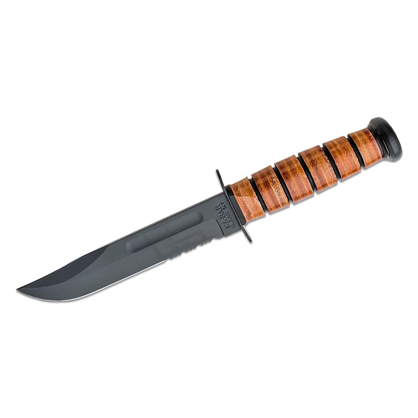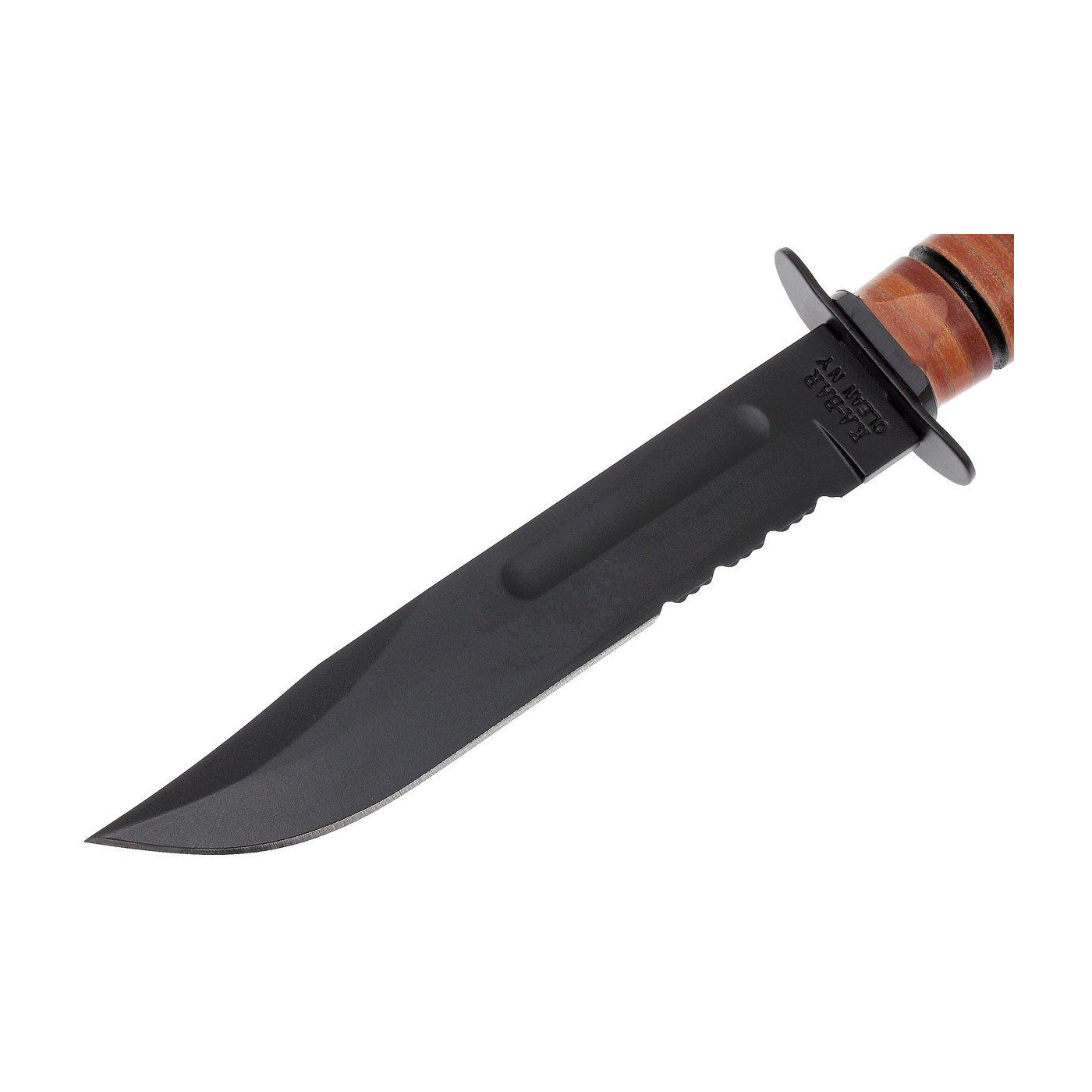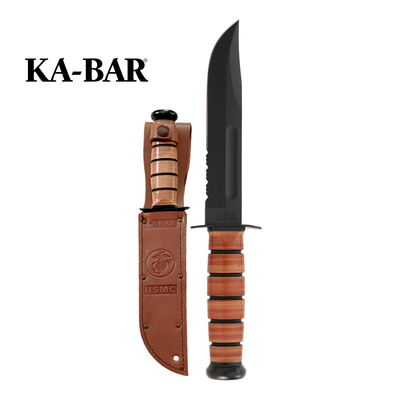 Il KA-BAR USMC 1235 è un coltello leggendario. Nel 1942, questo coltello fu scelto dal Corpo dei Marines degli Stati Uniti per essere il coltello da combattimento dei Marines. Da allora, questo coltello ha fatto parte dell'attrezzamento standard di molti soldati. Questo è un coltello grande e si sente molto robusto. Il manico ha parti protettive che impediscono di avvicinarsi al filo affilato come un rasoio mentre lo si usa. La lama è fatta di acciaio al carbonio 1095, caratteristica che non rende questo coltello inossidabile. Fortunatamente c'è un rivestimento nero sulla lama che rende la manutenzione molto più facile.