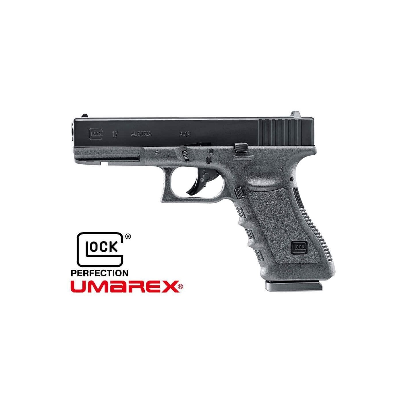 Versione della Glock 17 CO2 di Umarex che spara sial i Diablo 4,5mm che i BB. Il fatto che il carrello sia in metallo, e tutti i particolari fedelmente riprodotti rispetto alla versione a fuoco, rende la Glock 17 di Umarex un vero oggetto da collezione. Il contraccolpo rende ogni colpo simile alla realtà, e con la sua canna rigata la Glock 17 offre un'eccellente precisione.