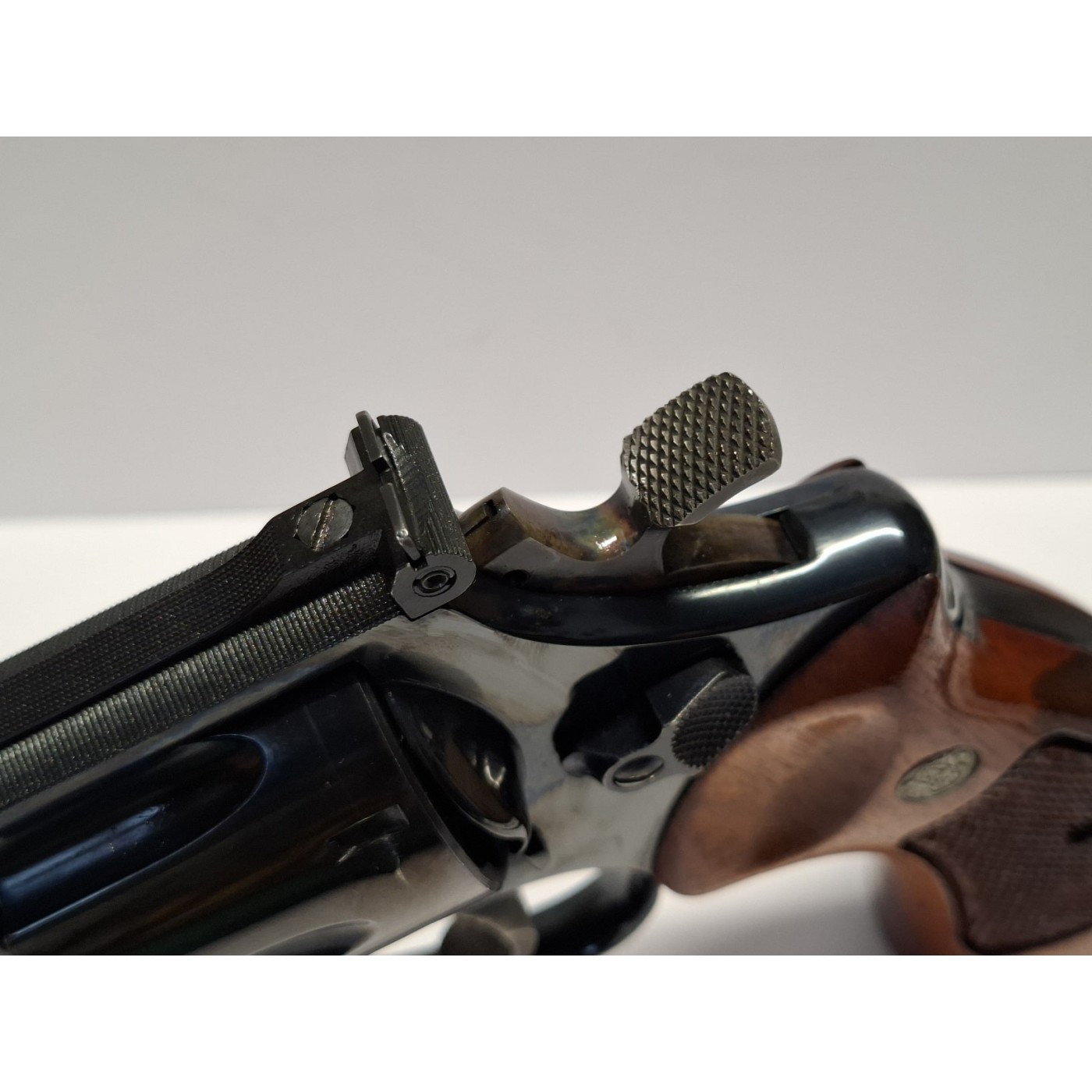 Revolver sportivo d' occasione Smith & Wesson modello 27-2 Target calibro 357 Magnum - Canna da 6″ spinata a specchio e con rigature ben definite - tacca di mira regolabile - cane e grilletto Target tartarugati - tamburo a 6 colpi con counterboring - Brunitura originale - meccanica e timing perfetti - Guancette in cocobolo originali di fabbrica con logo Smith & Wesson. Classificazione SPORTIVA. Anno 1978
