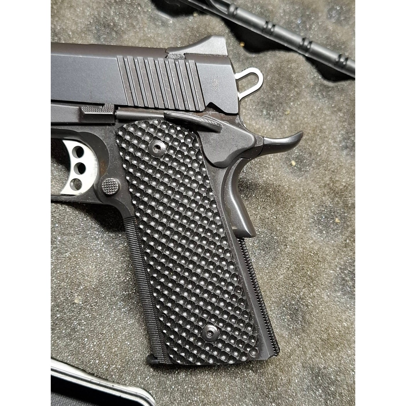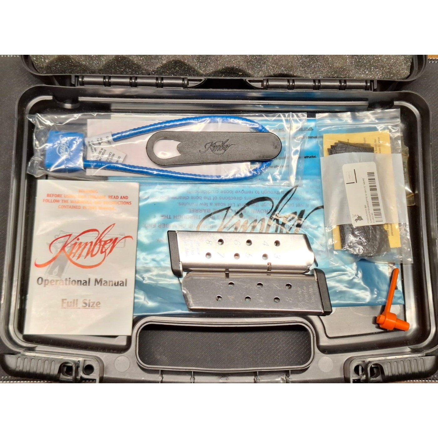 Kimber modello Custom TLE II – calibro 45 ACP – n° 3 caricatori Kimber da 8 colpi – n° 1 coppia di guancette oltre a quelle già montate in G10 – dotazioni come sul nuovo con valigetta e tutti i gadgets di serie (vedi foto) – in omaggio fondina in polimeroporta caricatore doppio sempre in polimero – Arma catalogata Sportiva –