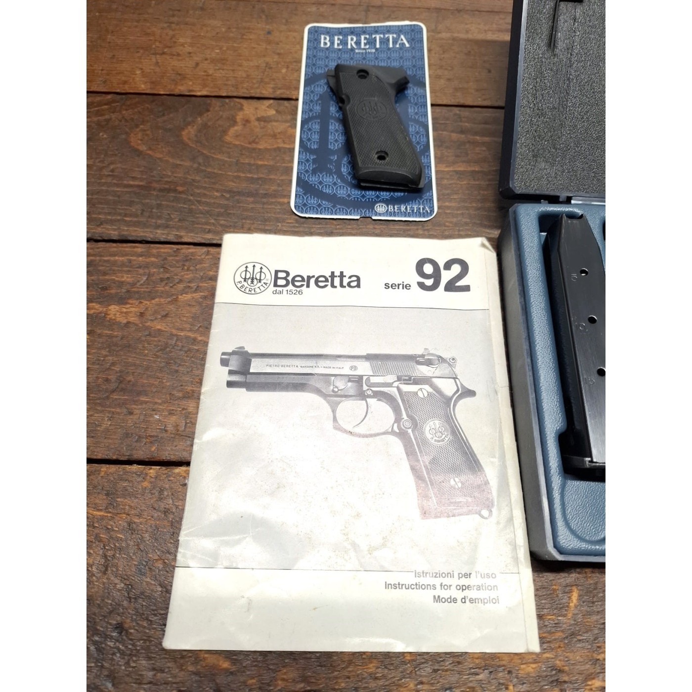 Bellissima pistola Beretta serie 98 in calibro 9x21 in confezione originale con n° 2 caricatori da 15 colpi – manuale di smontaggio – guancette anatomiche in gomma originali Beretta + guancette originali di serie – arma come da foto e video in condizioni eccellenti.