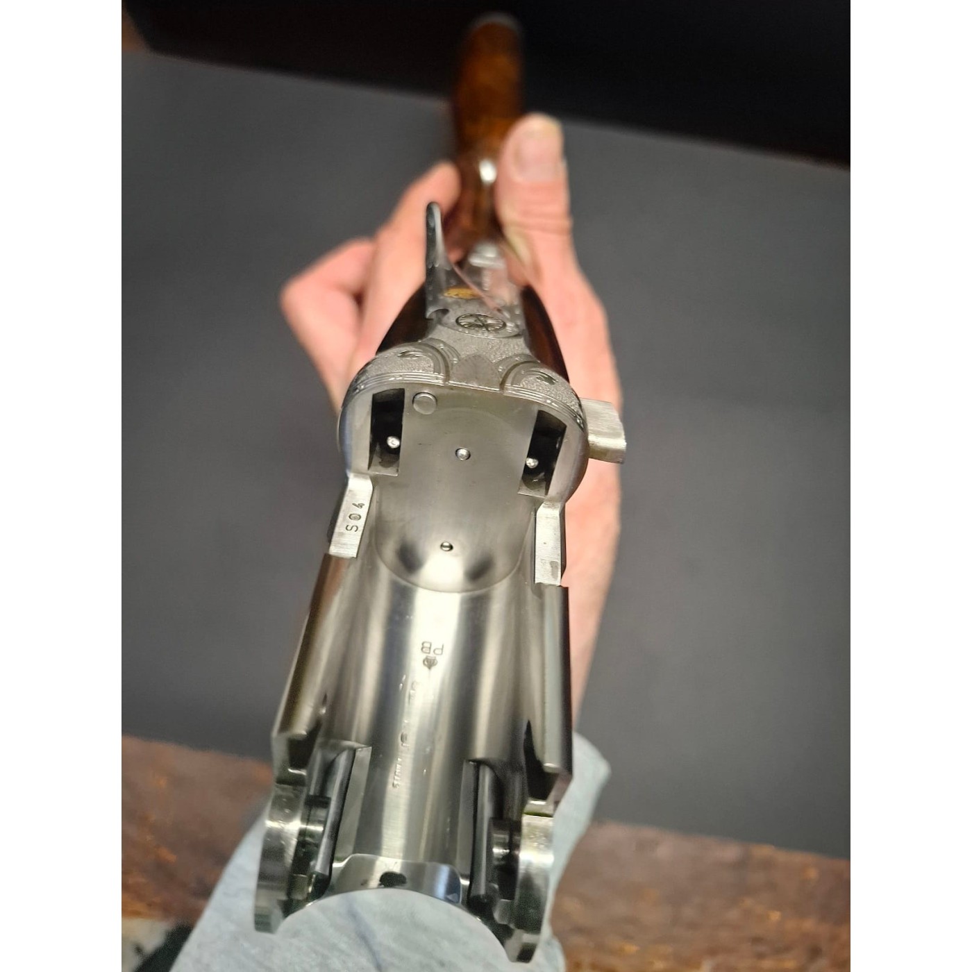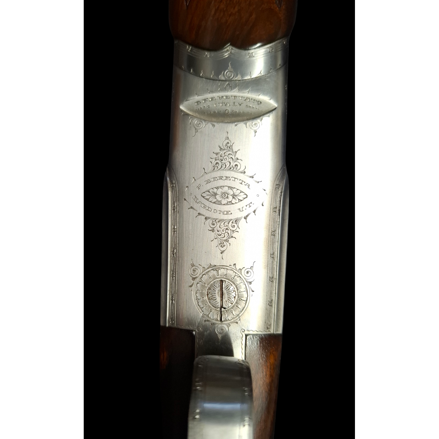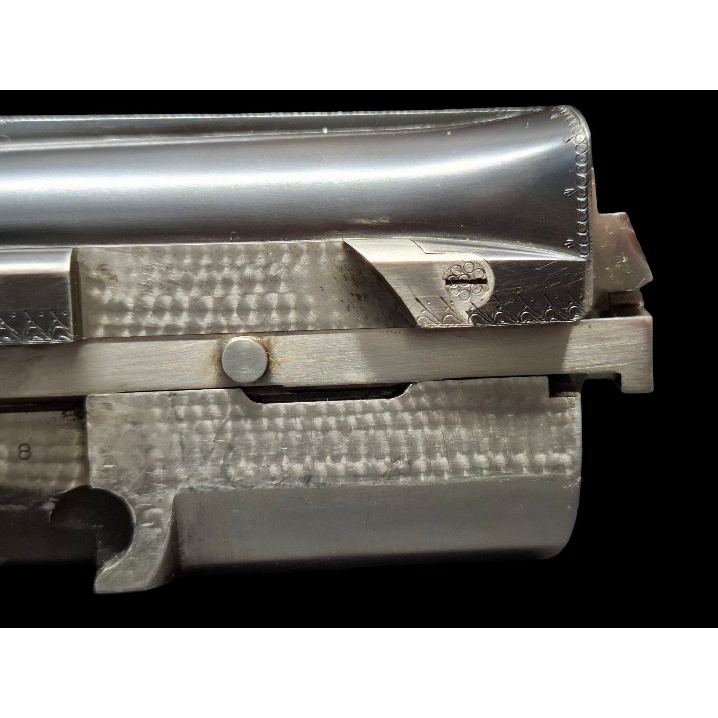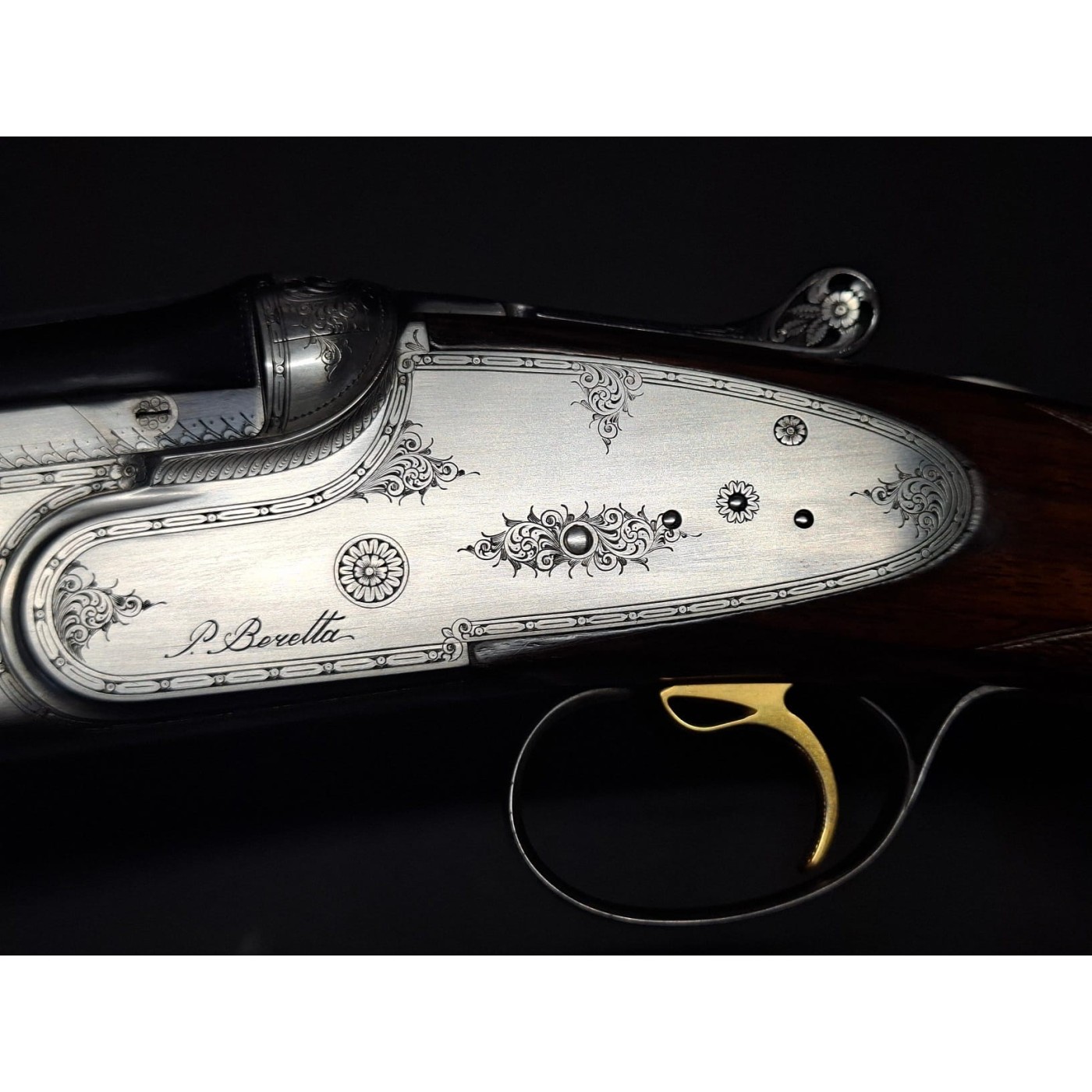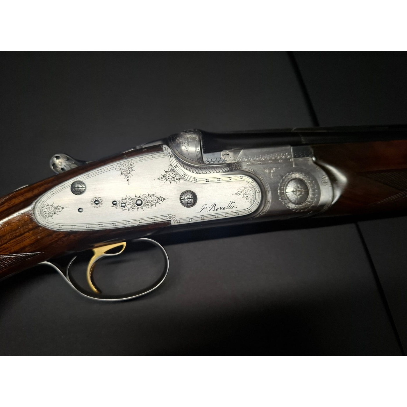 NOTE PARTICOLARI: mono grillo - estrattori automatici - chiave finemente traforata con Corona Oro e Canne in acciaio Boehler Antinit – calcio a pistola – batterie Holland & Holland - scudetto argento sul calcio ancora da incidere - confezione originale completo di tutta la sua documentazione.